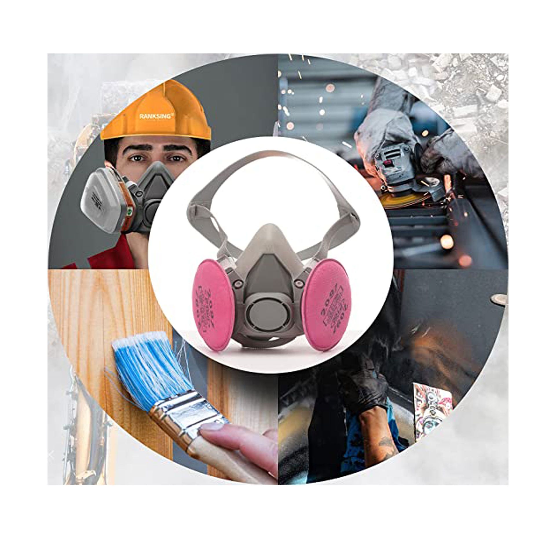 RANKSING SFM-6200 قناع وجه نصفى مع 2 فلتر 2091 P100 للعمل في الدهان، الغبار، الفورمالديهايد، الصنفرة، التلميع، الرش، وأعمال أخرى