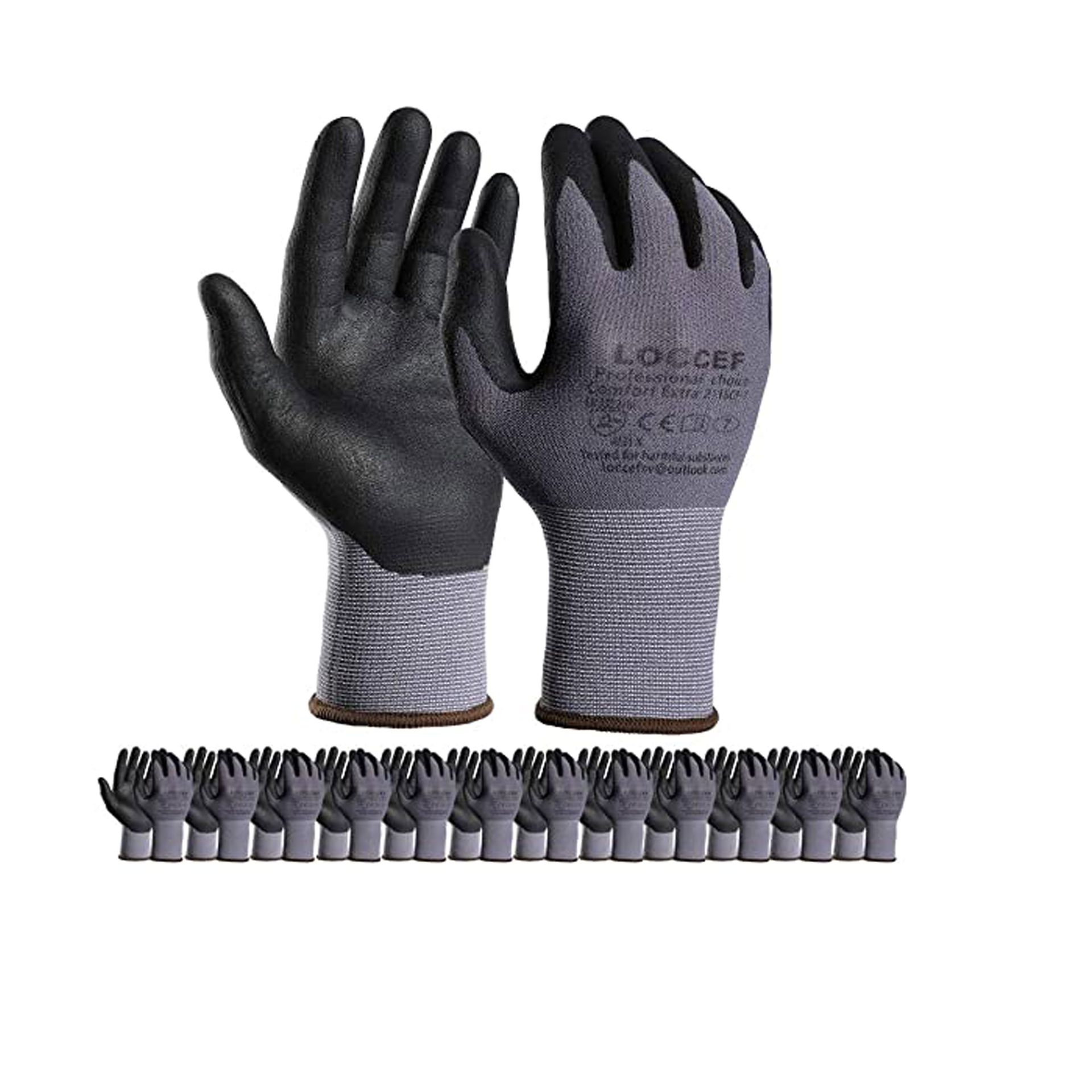 قفازات العمل الآمنة – طلاء ميكروفوم نيتريل | 12 زوج | قفازات نايلون محبوكة بدون درزات | لتحسين المنزل والعمل اليدوي