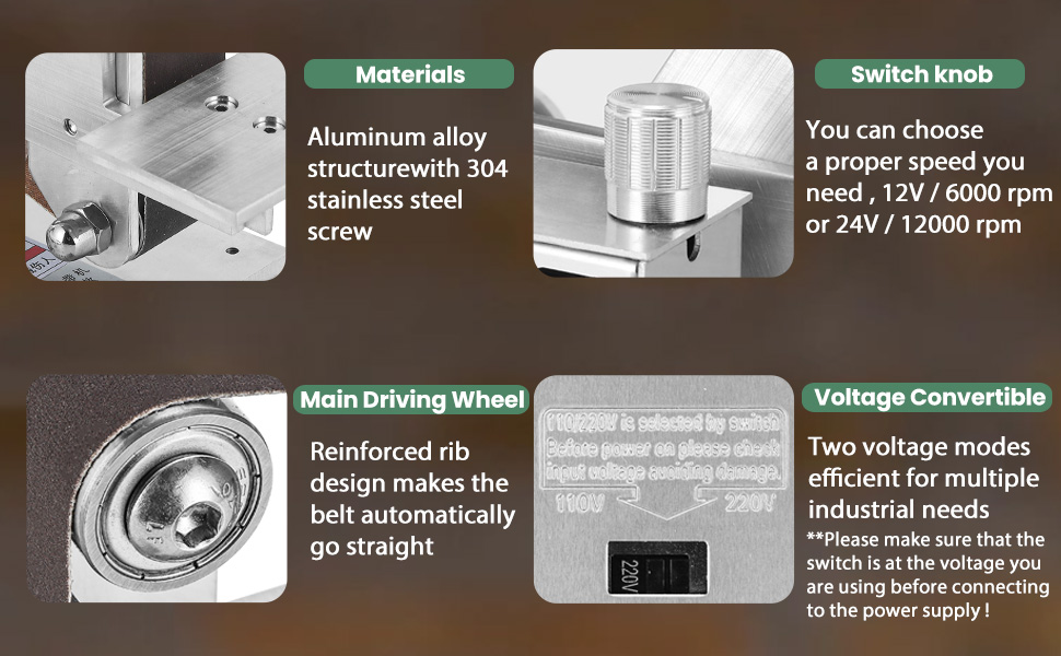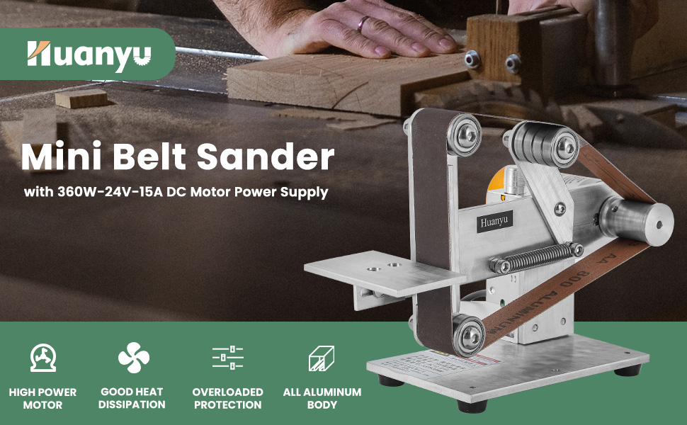 ماكينة الصنفرة Huanyu Mini – قوة 360 واط بحزام 1.2×21 بوصة مع 9 أحزمة متعددة الاستخدامات