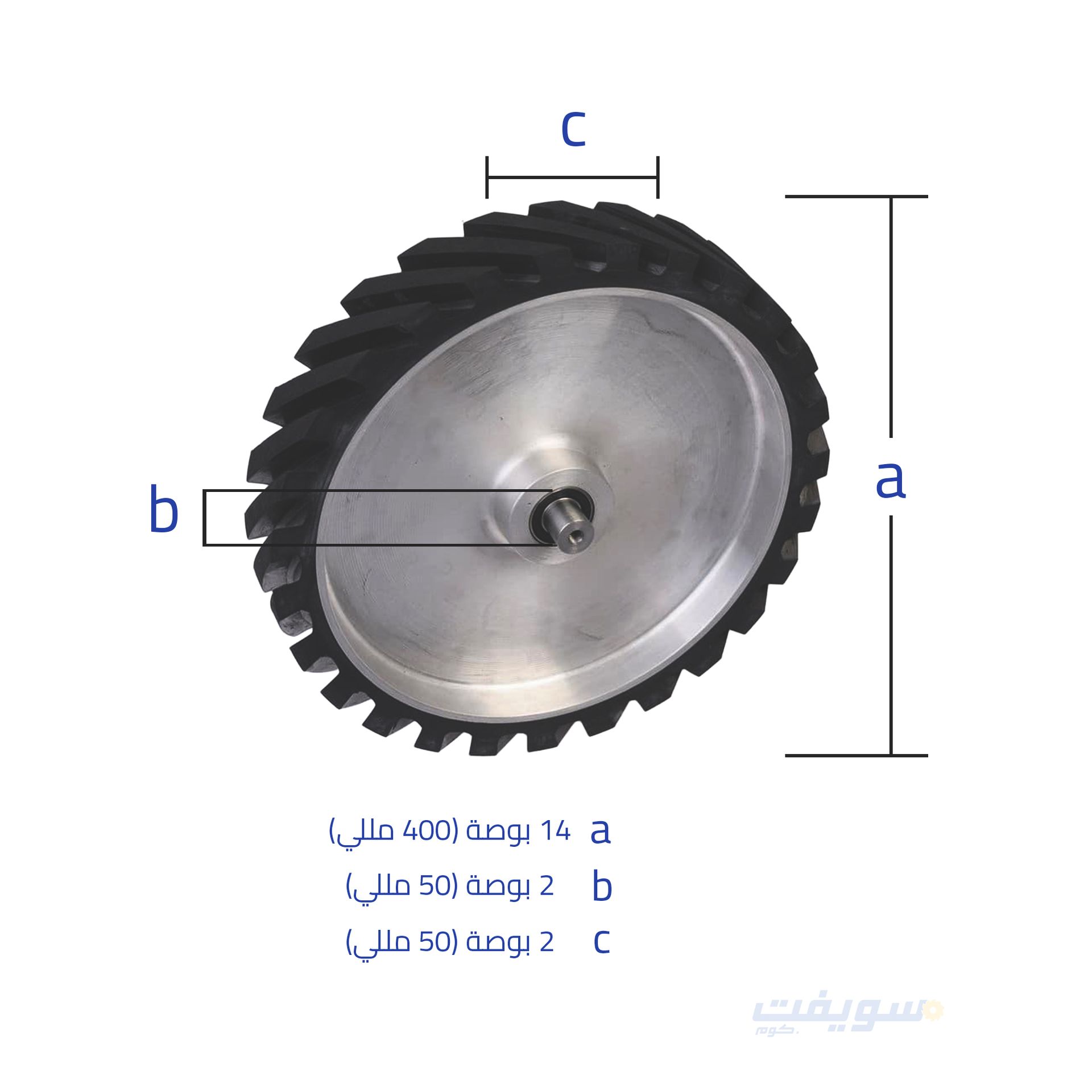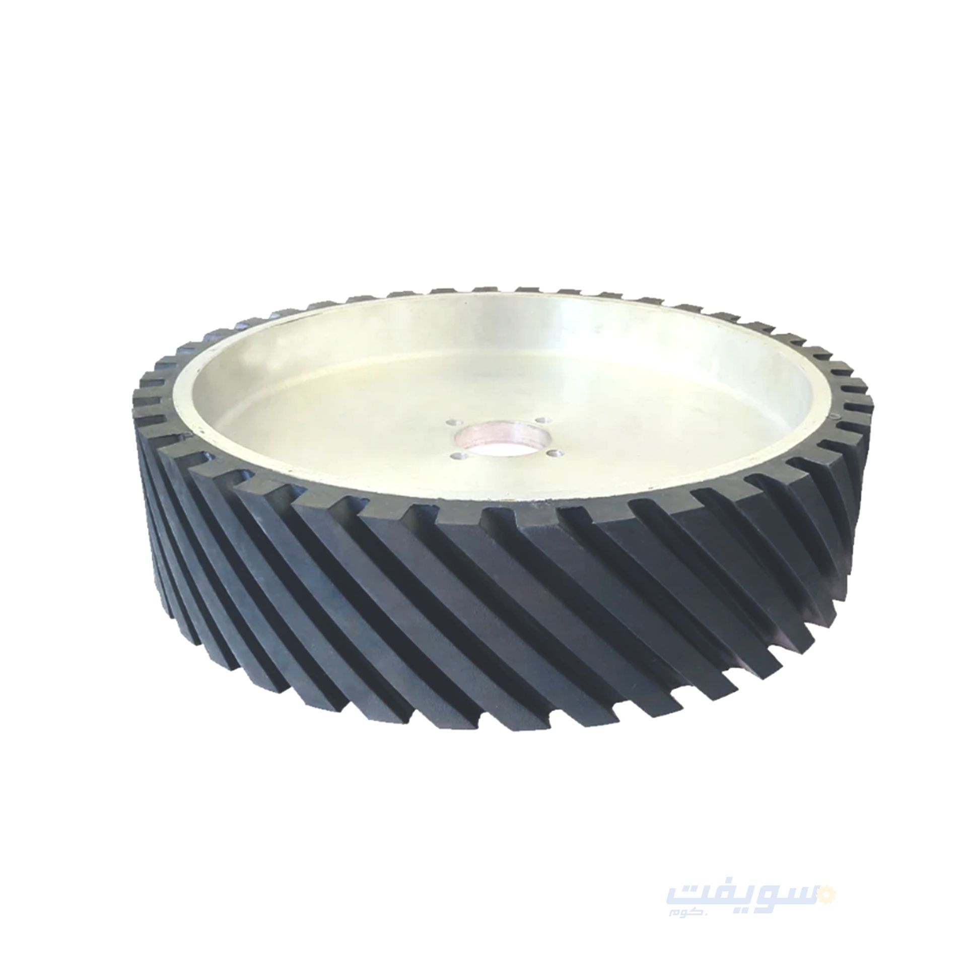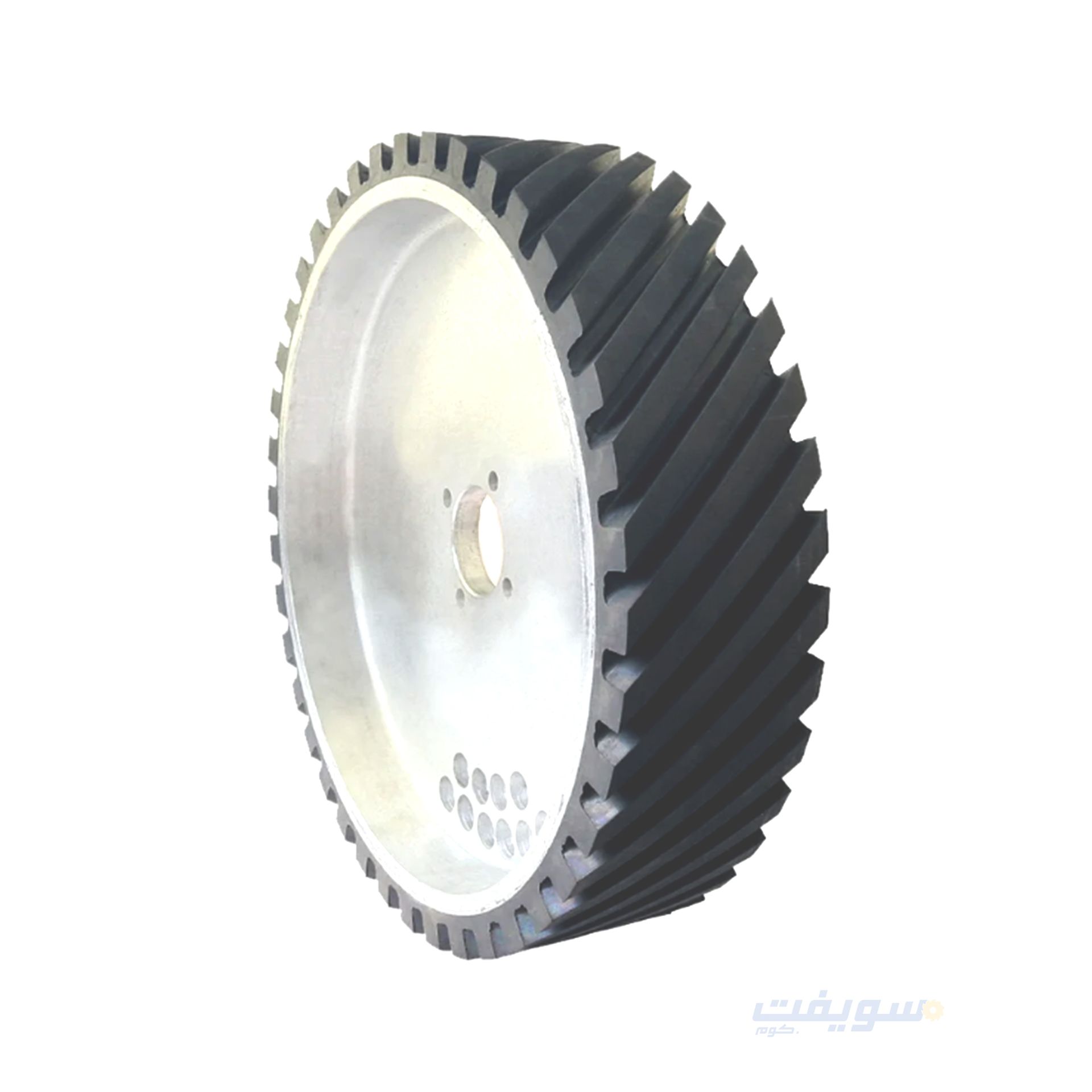 يتميّز سطحها بتصميم مسنن مشقوق (Grooved/Serrated) يُسهّل صرف الحرارة والغبار ويمنع انزلاق الحزام أثناء التشغيل، مما يُحسّن من كفاءة العمل.