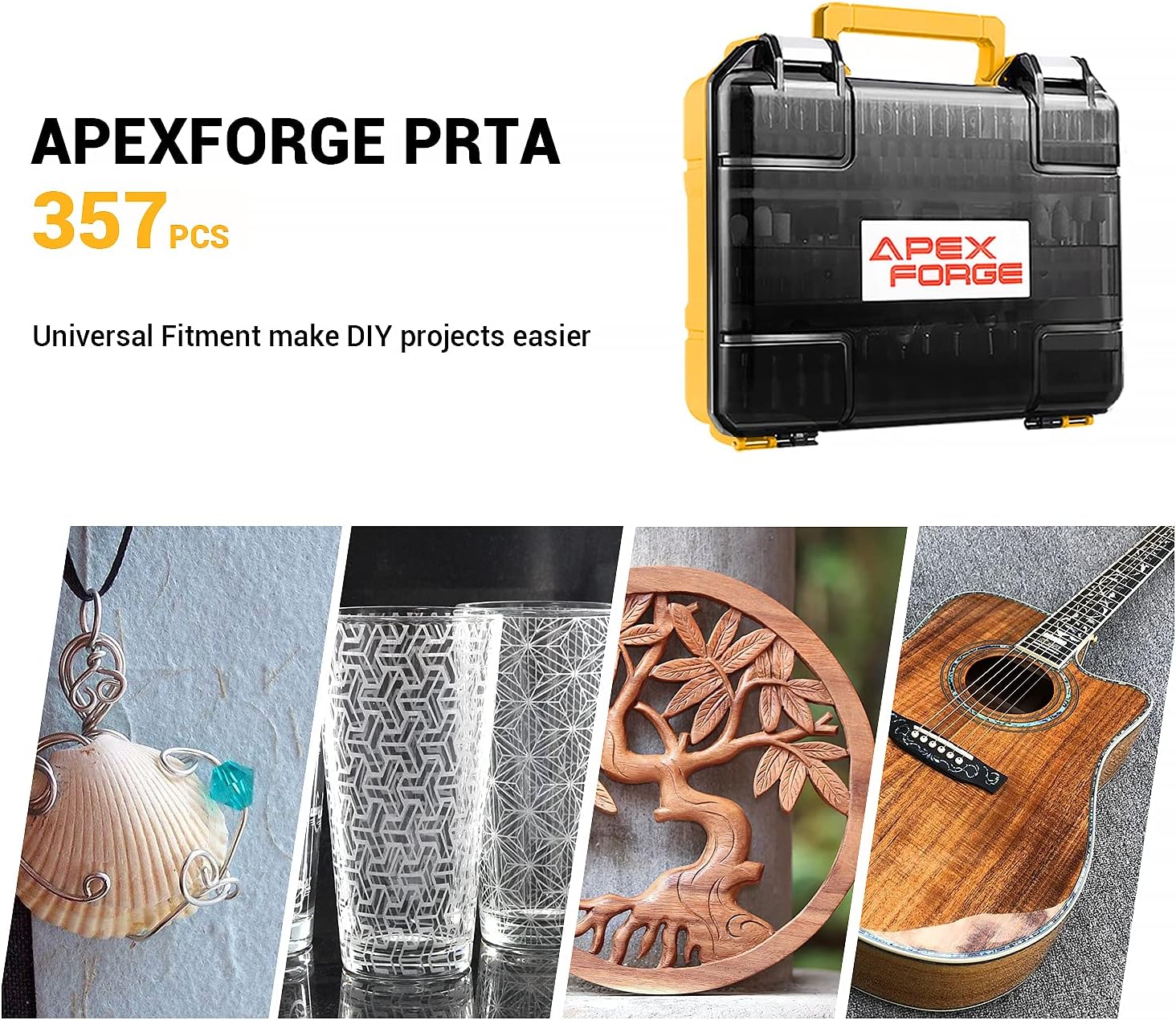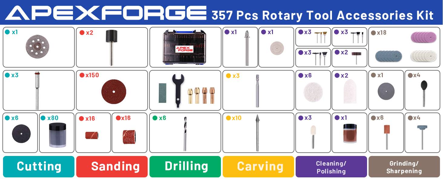 طقم APEXFORGE M0 – مجموعة إكسسوارات متعددة الاستخدامات 357 قطعة لأدوات الروتاري