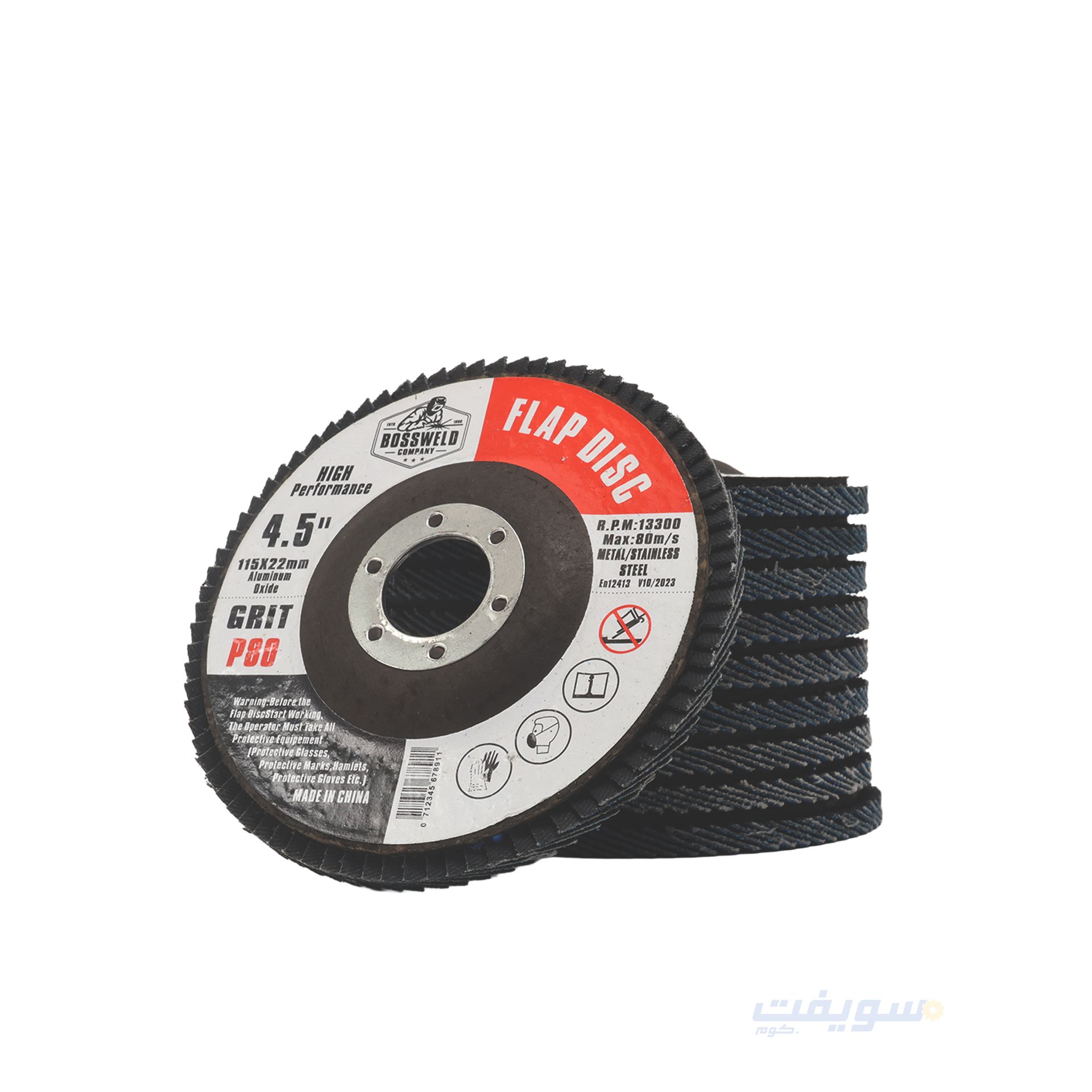 مروحية صنفرة 4.5 بوصة سمارت استانلس أزرق من BOSSWELD (خشانة 40 / 60 / 80) – RPM 13300