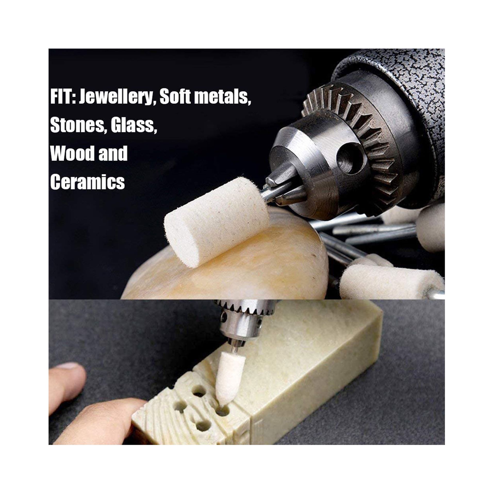 يحتوي الطقم على 99 قطعة متنوعة من رؤوس اللباد للتلميع إلى جانب رؤوس مدببة وحوامل، مما يوفر لك كل ما تحتاجه لصيانة وتلميع المجوهرات، المعادن، الزجاج، القوالب، والمزيد.