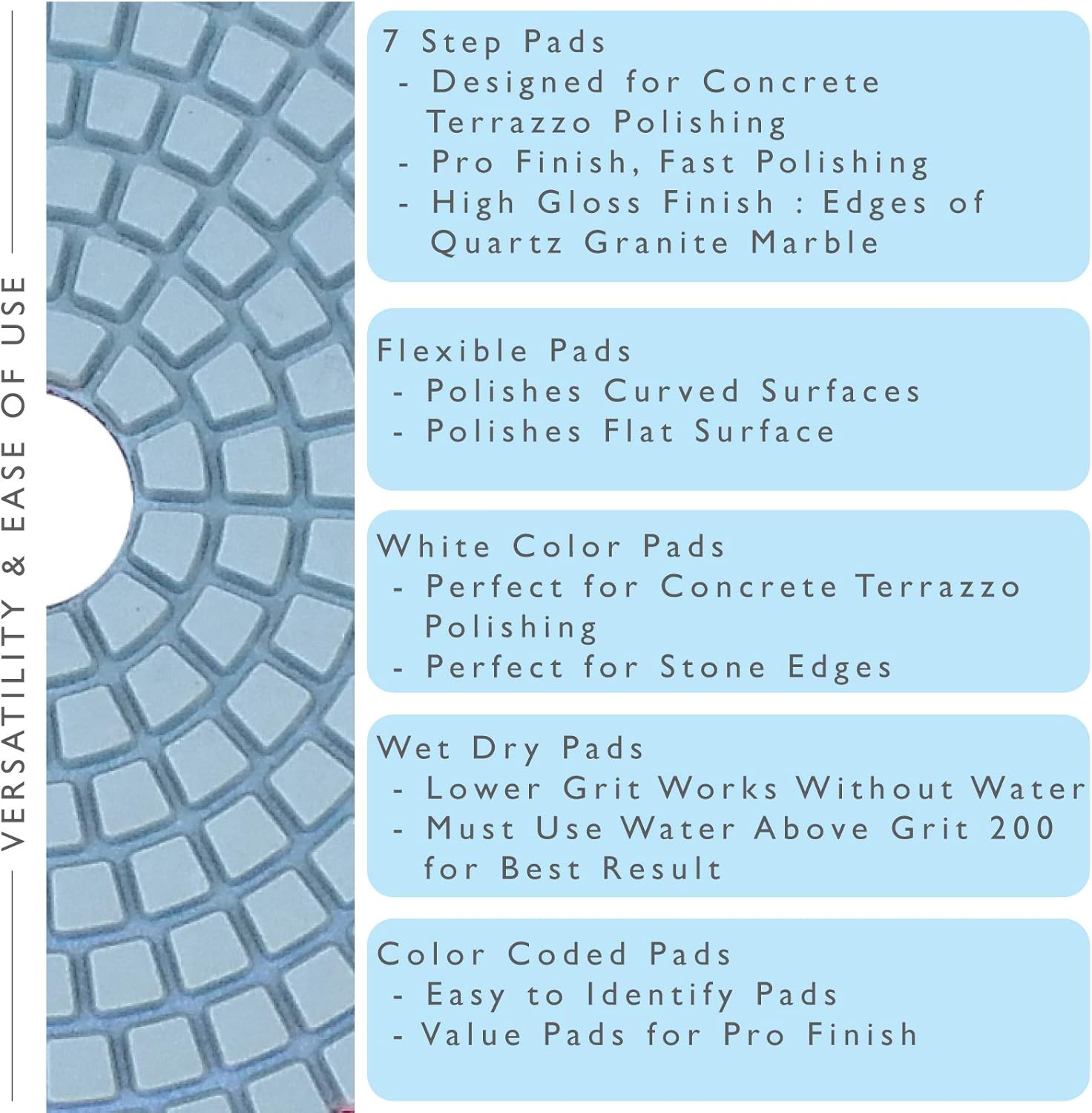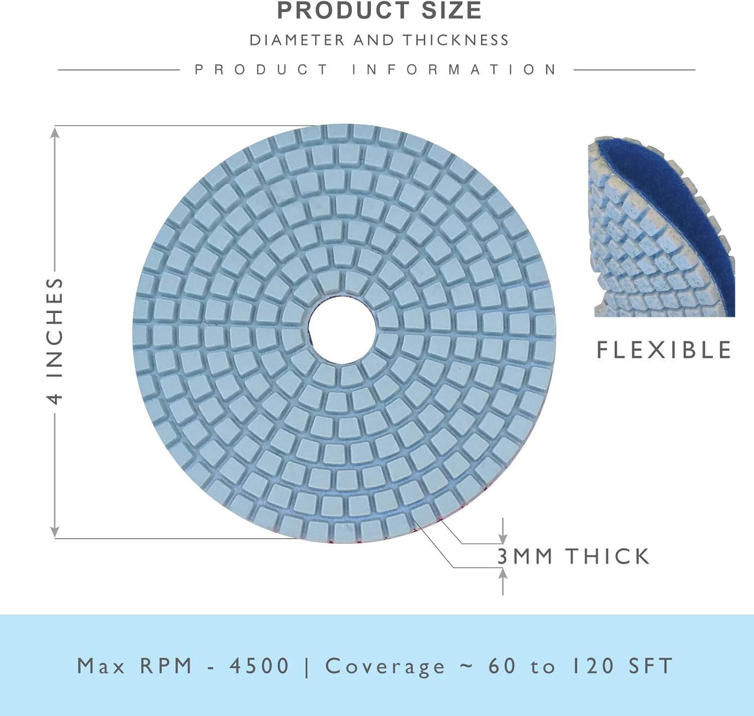 • 7 أقراص تلميع ماسية بسُمك 3 مم، مقاس 4 إنش