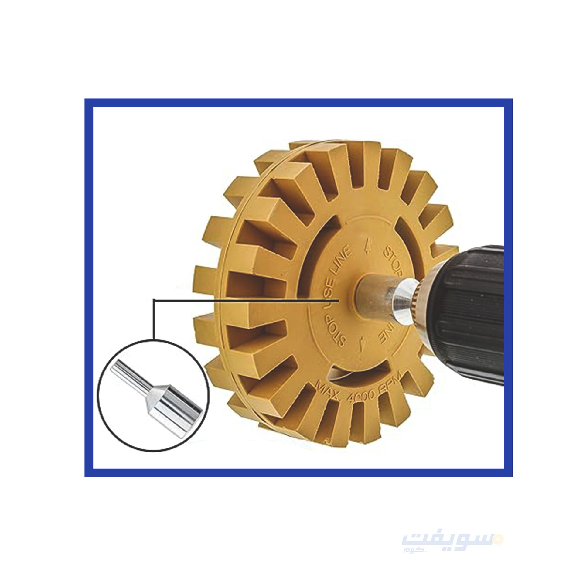 عجلة ممحاة مطاطية TCP Global لإزالة الملصقات – قطر 4 بوصة مع محول للدريل